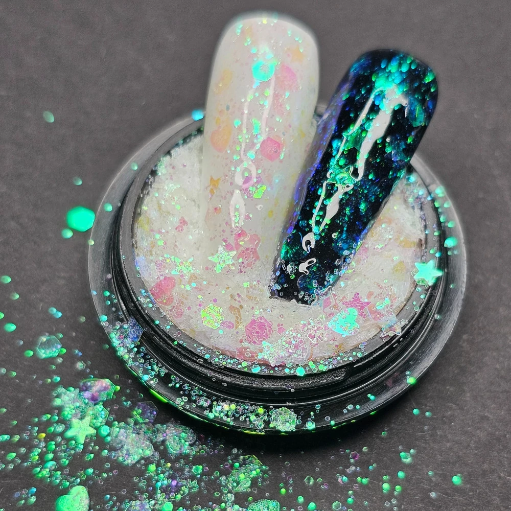 Látványos és különleges megjelenést biztosít, mivel széles választékban elérhető színek és csillogások kombinációját kínálja, így könnyedén kiemelheted vele a körmöd szépségét és egyedi megjelenését. Sokoldalú, hiszen a colorful galaxy glittert különböző módon használhatod a körmeid dekorálására. Készíthetsz vele egyszerű csillámos mintákat, vagy akár lélegzetelállító galaxis inspirált designokat is, mivel a csillámok köz többféle alakzat is megtalálható: szív, csillag hexagon, csillámpor, glitter.
