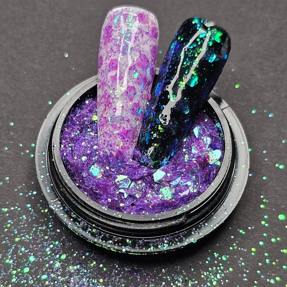 Látványos és különleges megjelenést biztosít, mivel széles választékban elérhető színek és csillogások kombinációját kínálja, így könnyedén kiemelheted vele a körmöd szépségét és egyedi megjelenését. Sokoldalú, hiszen a colorful galaxy glittert különböző módon használhatod a körmeid dekorálására. Készíthetsz vele egyszerű csillámos mintákat, vagy akár lélegzetelállító galaxis inspirált designokat is, mivel a csillámok köz többféle alakzat is megtalálható: szív, csillag hexagon, csillámpor, glitter.