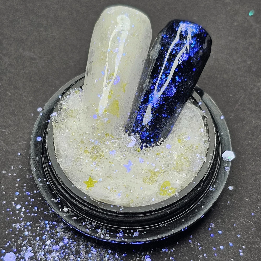 Látványos és különleges megjelenést biztosít, mivel széles választékban elérhető színek és csillogások kombinációját kínálja, így könnyedén kiemelheted vele a körmöd szépségét és egyedi megjelenését. Sokoldalú, hiszen a colorful galaxy glittert különböző módon használhatod a körmeid dekorálására. Készíthetsz vele egyszerű csillámos mintákat, vagy akár lélegzetelállító galaxis inspirált designokat is, mivel a csillámok köz többféle alakzat is megtalálható: szív, csillag hexagon, csillámpor, glitter.