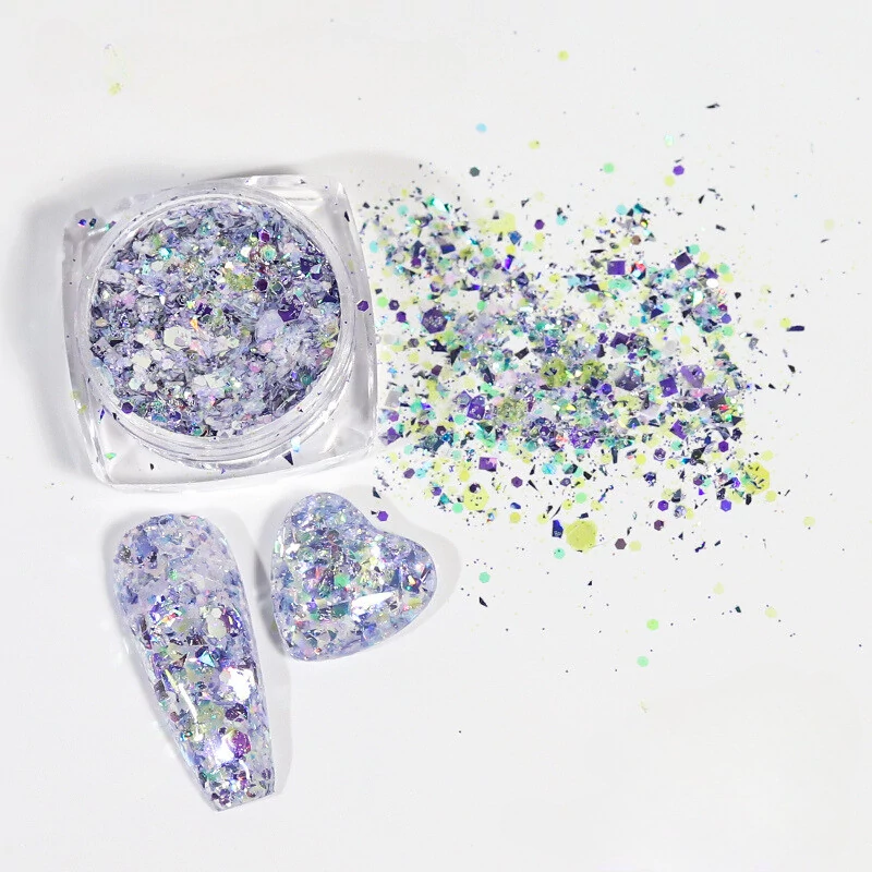 • Anyagok kiegészítése: A glittereket bele tudjuk keverni a különböző lakkokba, építőzselébe, akryl gél. Ezáltan nem szükséges újabb alapanyagokat vásárolnunk, hanem gyárthatunk magunknak egy glitteres változatot. Ezzel a módszerrel izgalmas és egyedi körmöket alkothatunk.