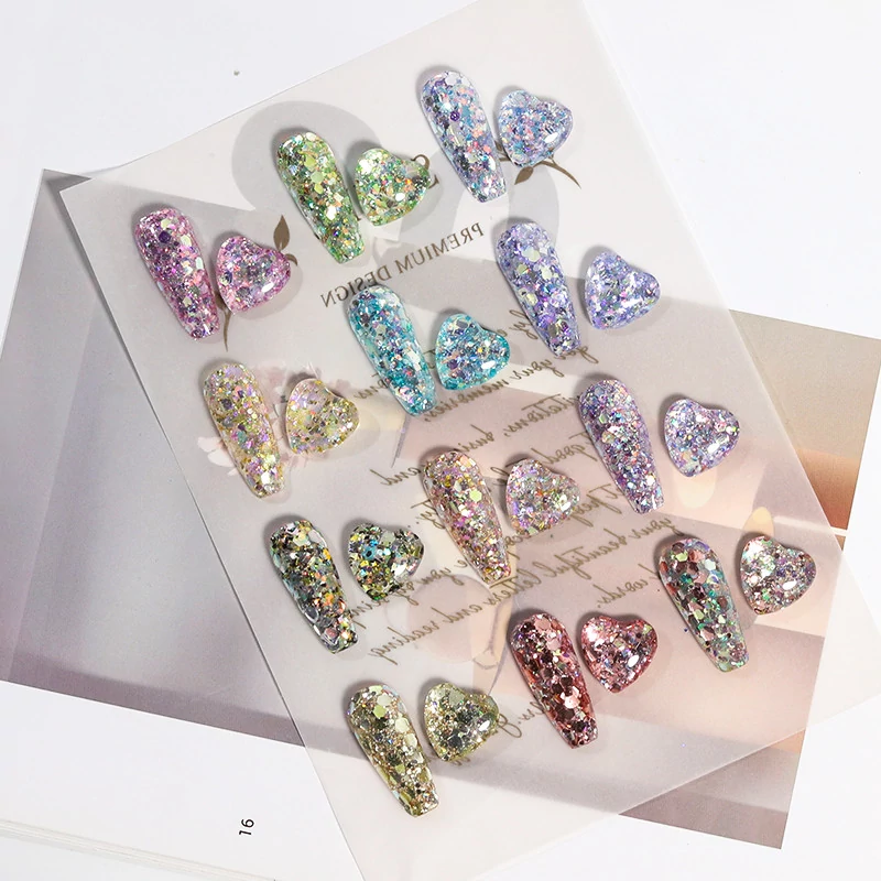 - Anyagok kiegészítése: A glittereket bele tudjuk keverni a különböző lakkokba, építőzselébe, akryl gél. Ezáltan nem szükséges újabb alapanyagokat vásárolnunk, hanem gyárthatunk magunknak egy glitteres változatot. Ezzel a módszerrel izgalmas és egyedi körmöket alkothatunk.