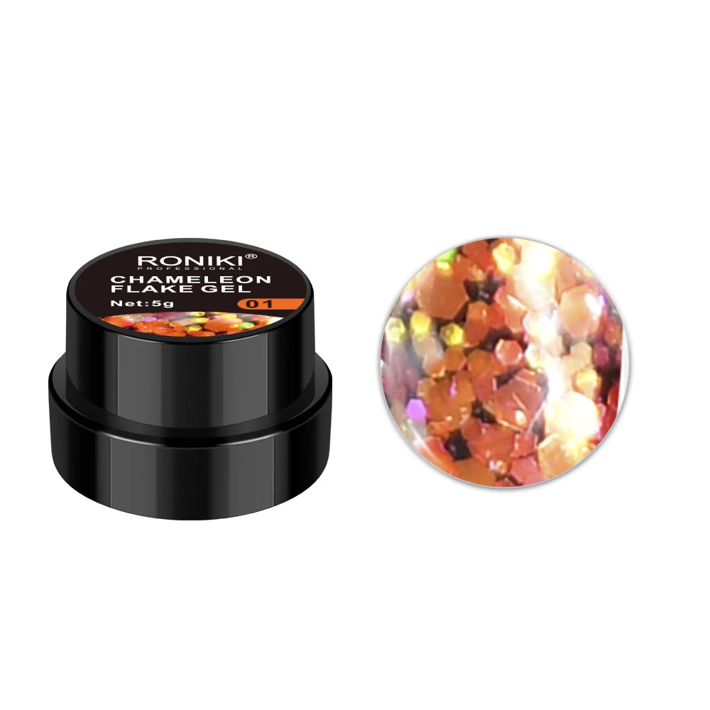 1. Chameleon flake gél 01 - narancsos, réz hatású csillogás mely arany hologrammos hatást kelt