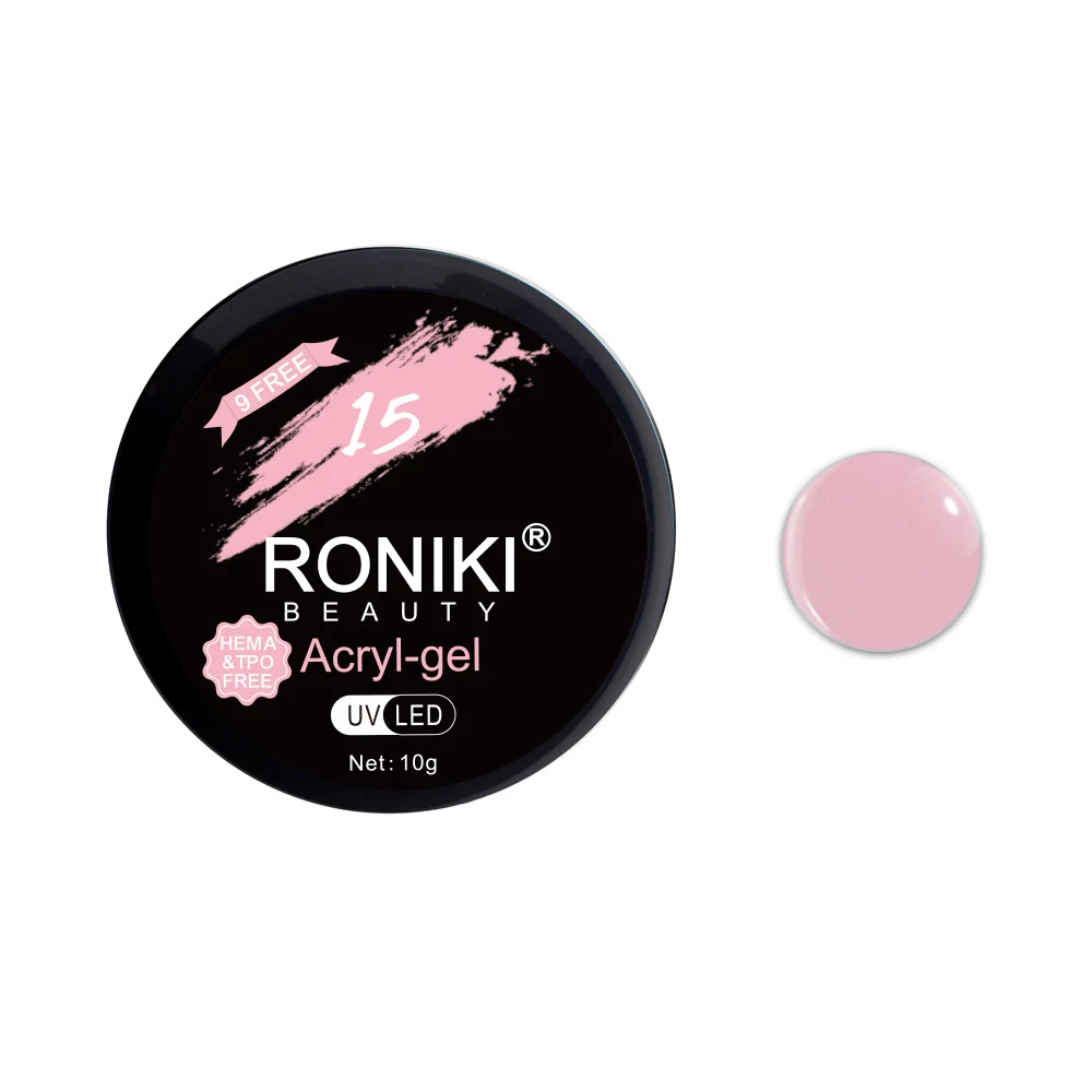 - Roniki Akril gél felhelyezése spatulával a körömfelületre, majd egy ecset segítségével az anyag eldolgozása a megfelelő hosszaben ér formában.