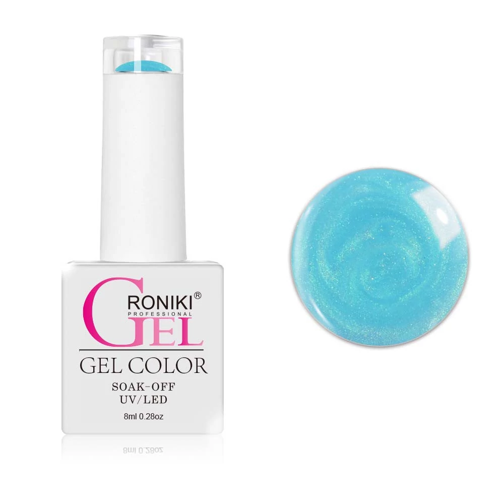 • Roniki Pearl threaded széria 09 gél lakk - A gyöngyház világoskék lakkot általában akkor használják, amikor egy finom, nőies és elegáns megjelenésre vágynak a körmökön. Ez a szín gyönyörűen csillog és fénylik, és nagyon jól mutat mindenféle formájú és hosszúságú körmön.