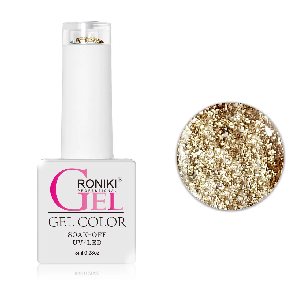 Roniki Platinum diamond széria - 08 csillámos arany gél lakk
