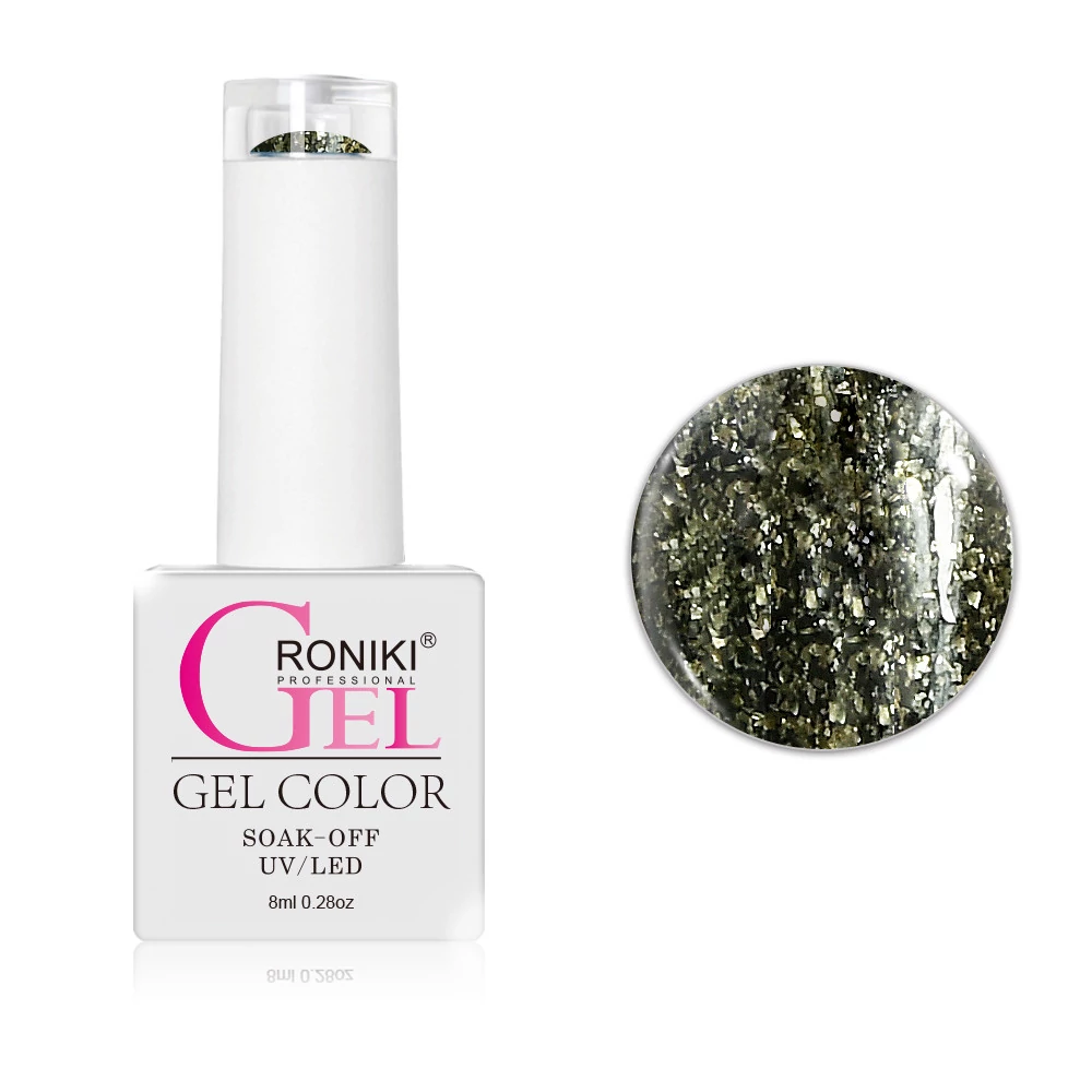 Roniki Platinum diamond széria - 12 csillámos arany gél lakk