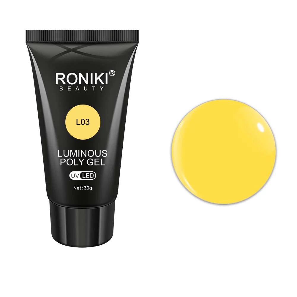 Az ideális körömhosszabbító gél egyesíti magában a porcelán és a zselé legkedvezőbb tulajdonságait. Rugalmas, erősen tapad, és a letörésétől sem kell tartanunk. A 30g-os Roniki poly geljétől mindezt megkapjuk, és még ennél is többet: egy gyorsan száradó, kemény, tartós felületet. Lepd meg vendégeidet ezzel az exkluzív eredményt garantáló, esztétikus műkörömépítési megoldással!