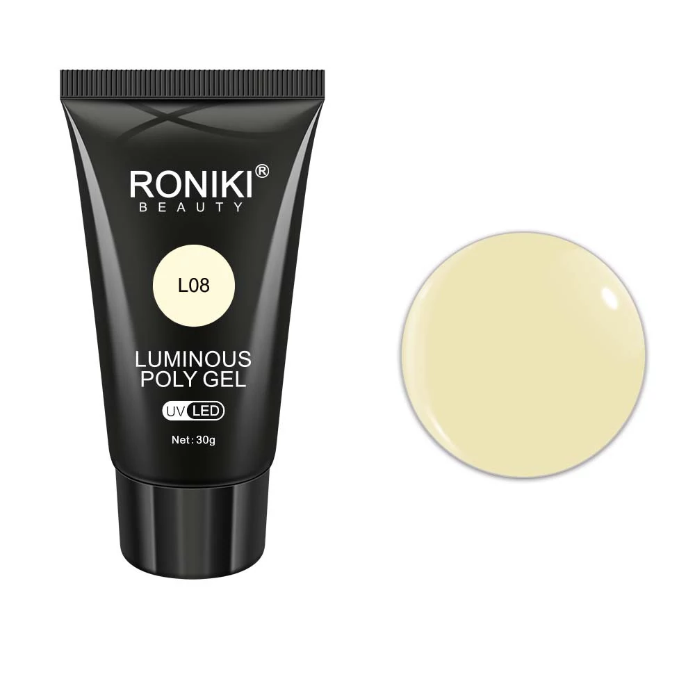 Az ideális körömhosszabbító gél egyesíti magában a porcelán és a zselé legkedvezőbb tulajdonságait. Rugalmas, erősen tapad, és a letörésétől sem kell tartanunk. A 30g-os Roniki poly geljétől mindezt megkapjuk, és még ennél is többet: egy gyorsan száradó, kemény, tartós felületet. Lepd meg vendégeidet ezzel az exkluzív eredményt garantáló, esztétikus műkörömépítési megoldással!
