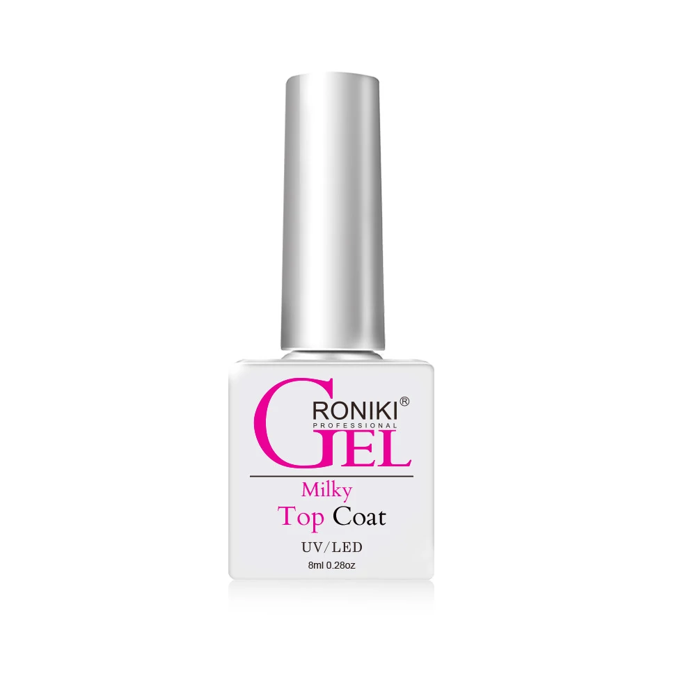 A Roniki top gél ragyogó befejezést adhat munkádnak. Állatokon nem tesztelt, természetes alapanyagokból készült - így vendégeid körméhez és körömágyához is kíméletes. Használatával több, mint 3 hétig gyönyörűek maradnak körömkreációid.