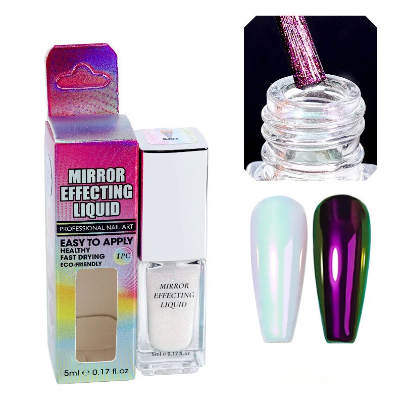 A mirror liquid körömdíszítő folyadék rengeteg különböző fajtája létezik, mindegyik más és más hatással rendelkezik a körmökön. Az egyik legnépszerűbb fajta a holografikus tükröző folyadék, amely csodás szivárványszínű hatást kölcsönöz a körmöknek.
