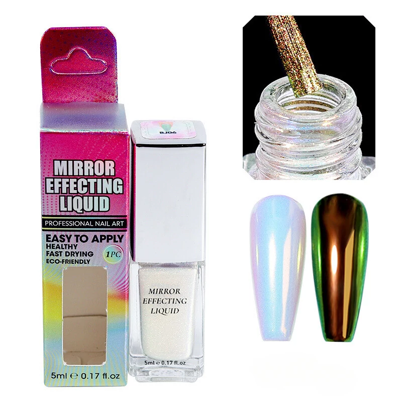 A mirror liquid körömdíszítő folyadék rengeteg különböző fajtája létezik, mindegyik más és más hatással rendelkezik a körmökön. Az egyik legnépszerűbb fajta a holografikus tükröző folyadék, amely csodás szivárványszínű hatást kölcsönöz a körmöknek.